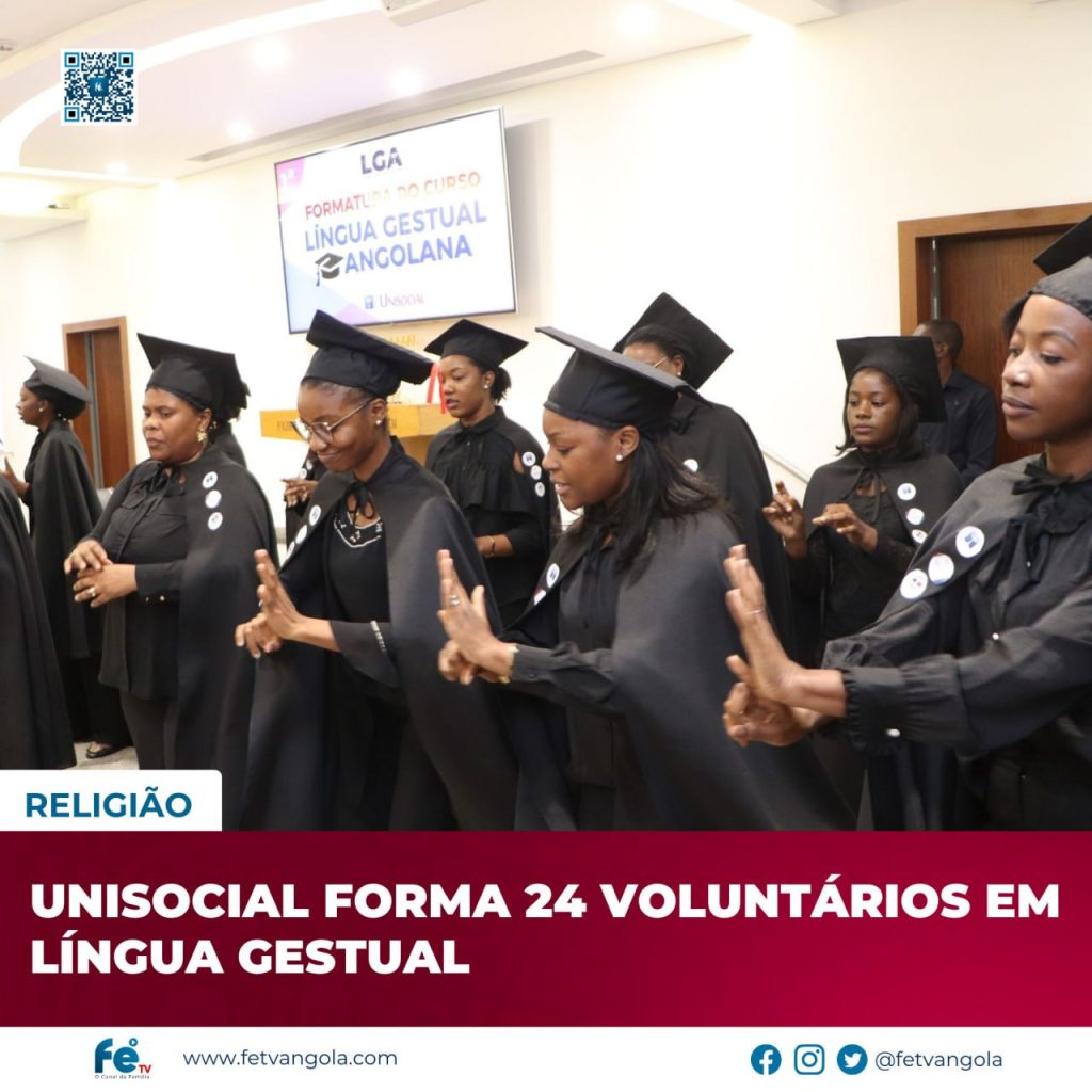A Unisocial, realizou com sucesso a 1ª Formatura do Curso de Linguagem Gestual Angolana, capacitando 24 voluntários para actuarem como intérpretes da comunicação com a comunidade surda durante as actividades religiosas.