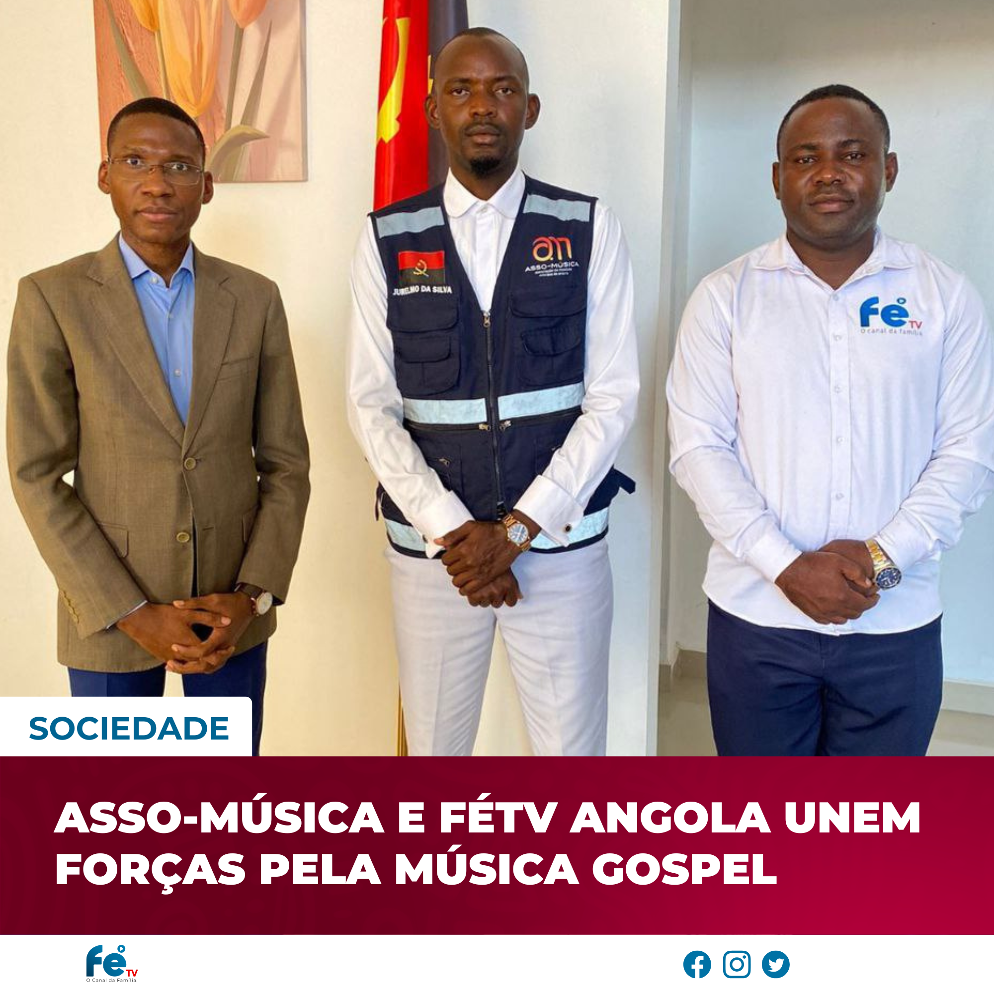ASSO-MÚSICA E FÉTV ANGOLA UNEM FORÇAS PELA MÚSICA GOSPEL! Um passo histórico foi dado para o futuro da música gospel em Angola. A ASSO-MÚSICA e a Fé TV Angola realizaram uma reunião estratégica que juntou o Presidente da ASSO-MÚSICA, Jurelmo da Silva e o Director da Fé TV Angola, Olívio Alberto, com o objectivo de […]