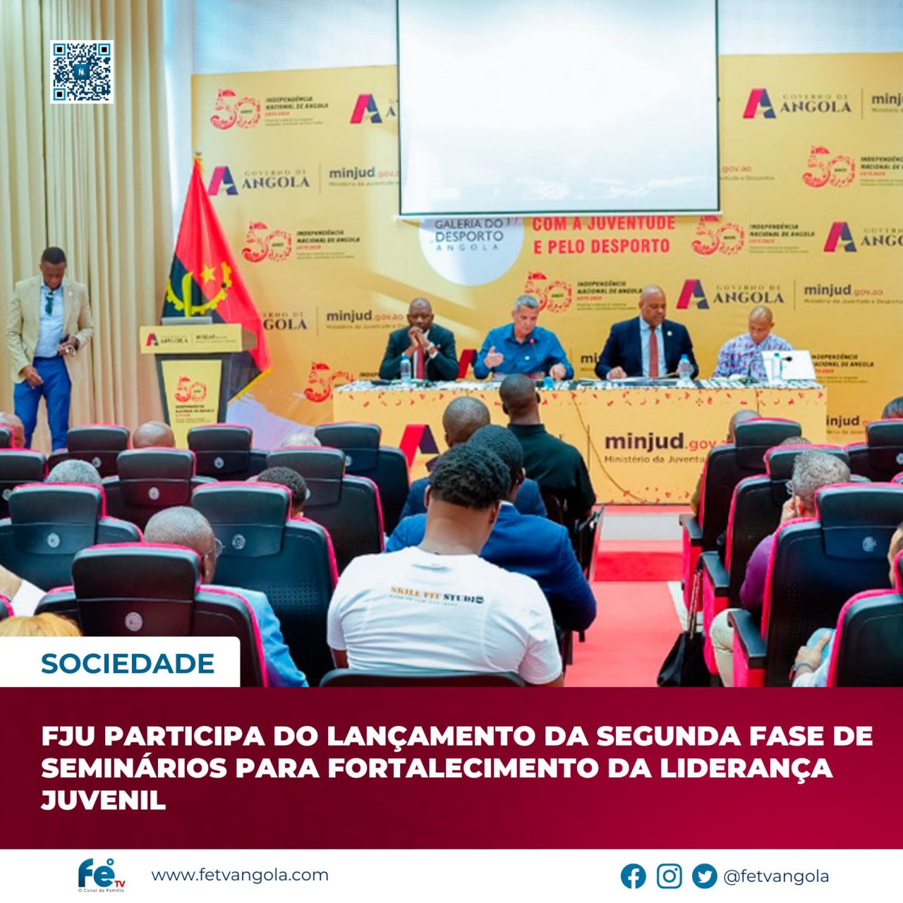 A Força Jovem Unida, da Igreja do Reino de Deus, participa da 2ª Fase do Ciclo de Seminários sobre Liderança, Gestão Associativa e Animação Juvenil, uma iniciativa estratégica integrada no Plano de Desenvolvimento Juvenil (PDJ: 2025–2027), organizado pelo Ministério da Juventude e Desportos, por meio da Direcção Nacional da Juventude.