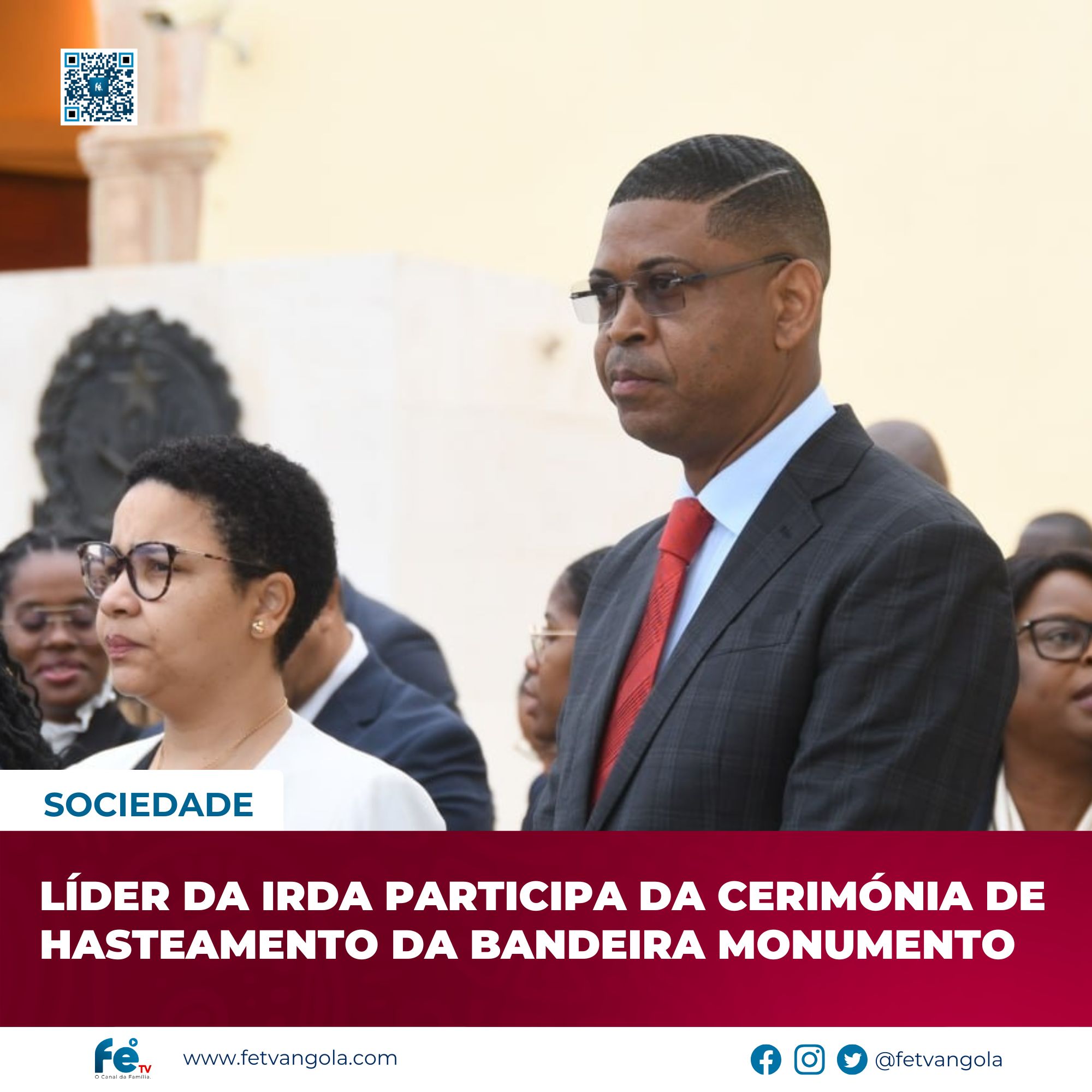 O Bispo Alberto Segunda, líder da IRDA, esteve presente, nesta Quarta-feira, na Cerimónia de Hasteamento da Bandeira Monumento, realizada no Museu Nacional das Forças Armadas (Fortaleza de São Miguel), em Luanda.
